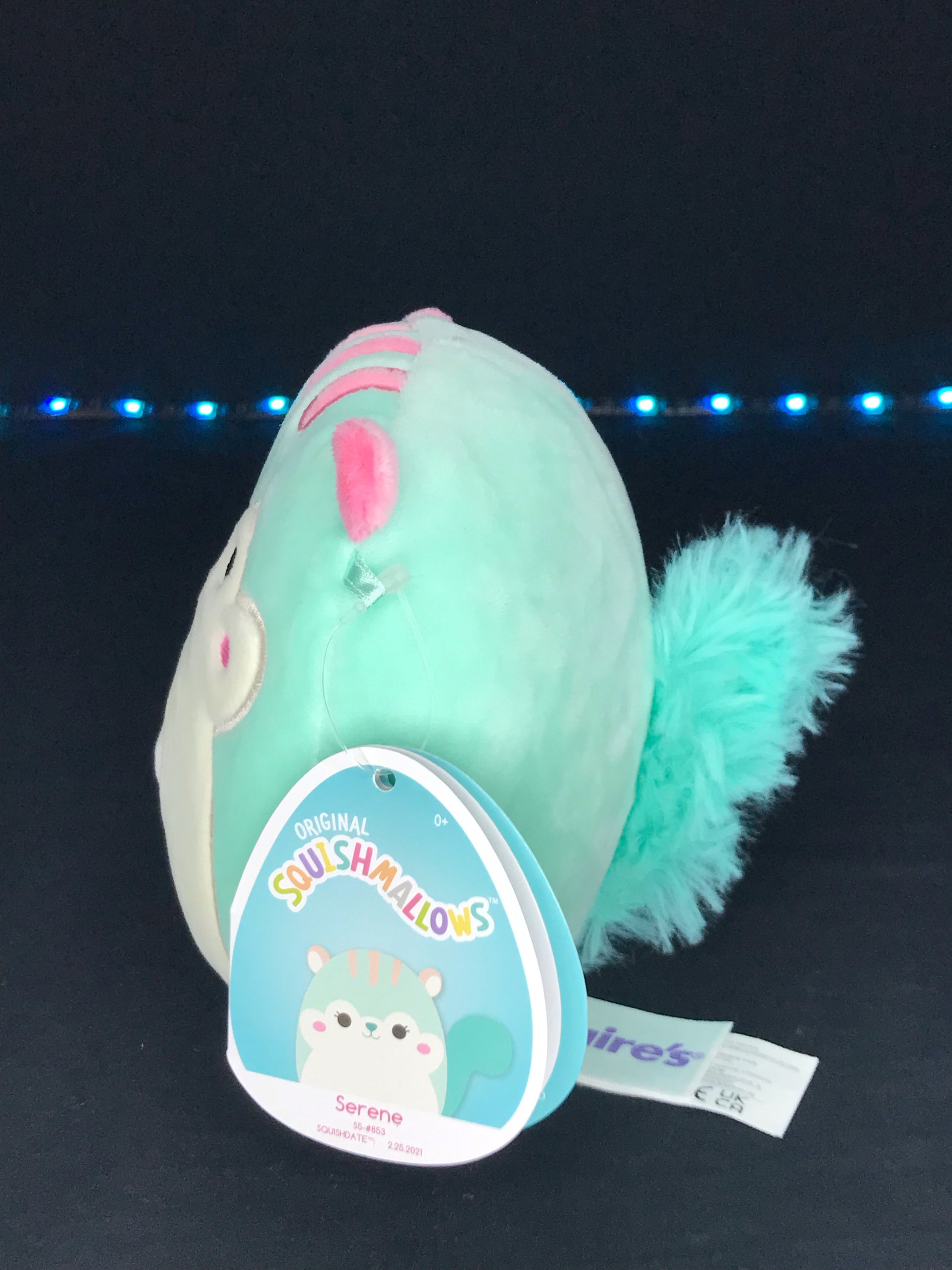 This teal blue squirrel is bringing fun vibes! A super soft plush with pink accents - Serene is the perfect addition to any growing collection